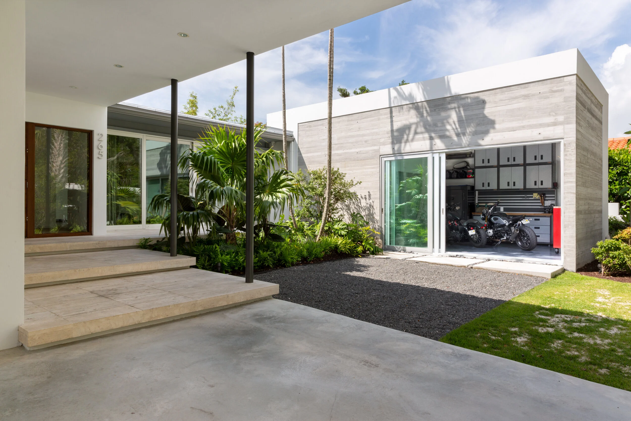 “Following the client’s enthusiasm for motorcycles, the workshop/garage became integral to developing the character of the home.”