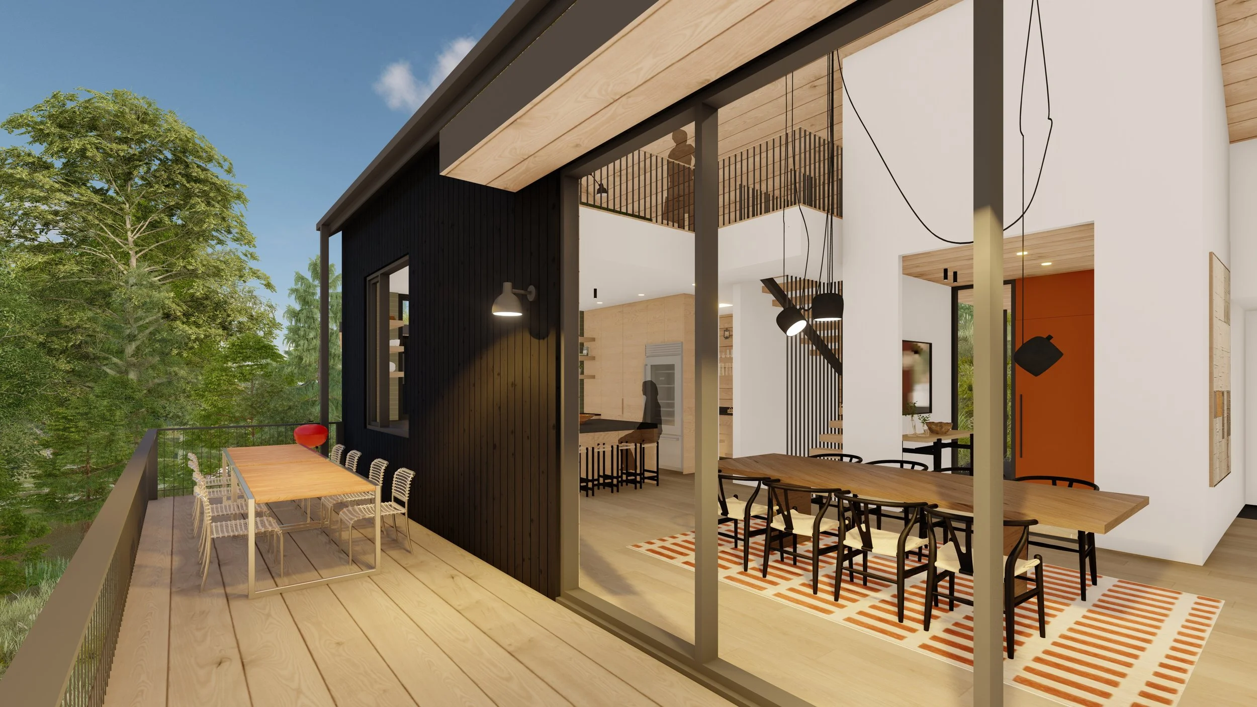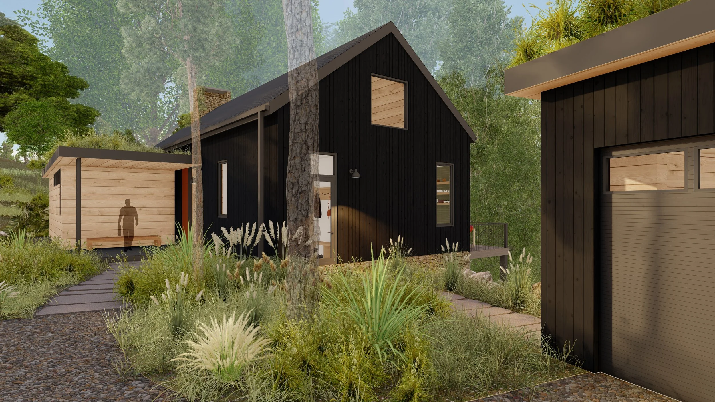 Tucked away in the scenic Blue Ridge Mountains, this modern cabin is a serene retreat between Asheville and Black Mountain in North Carolina. Crafted from locally sourced stone and timber, it seamlessly integrates with its wooded surroundings, celebrating the natural beauty of the undisturbed landscape. Large windows invite abundant light and stunning views of the towering trees and rolling hills, creating a warm, inviting atmosphere. The cabin’s design balances contemporary elegance with rustic charm, providing a perfect escape for those seeking tranquility in nature. With its thoughtful architecture and connection to the environment, this mountain haven is a true gem amidst the backdrop of the Blue Ridge Mountains.
